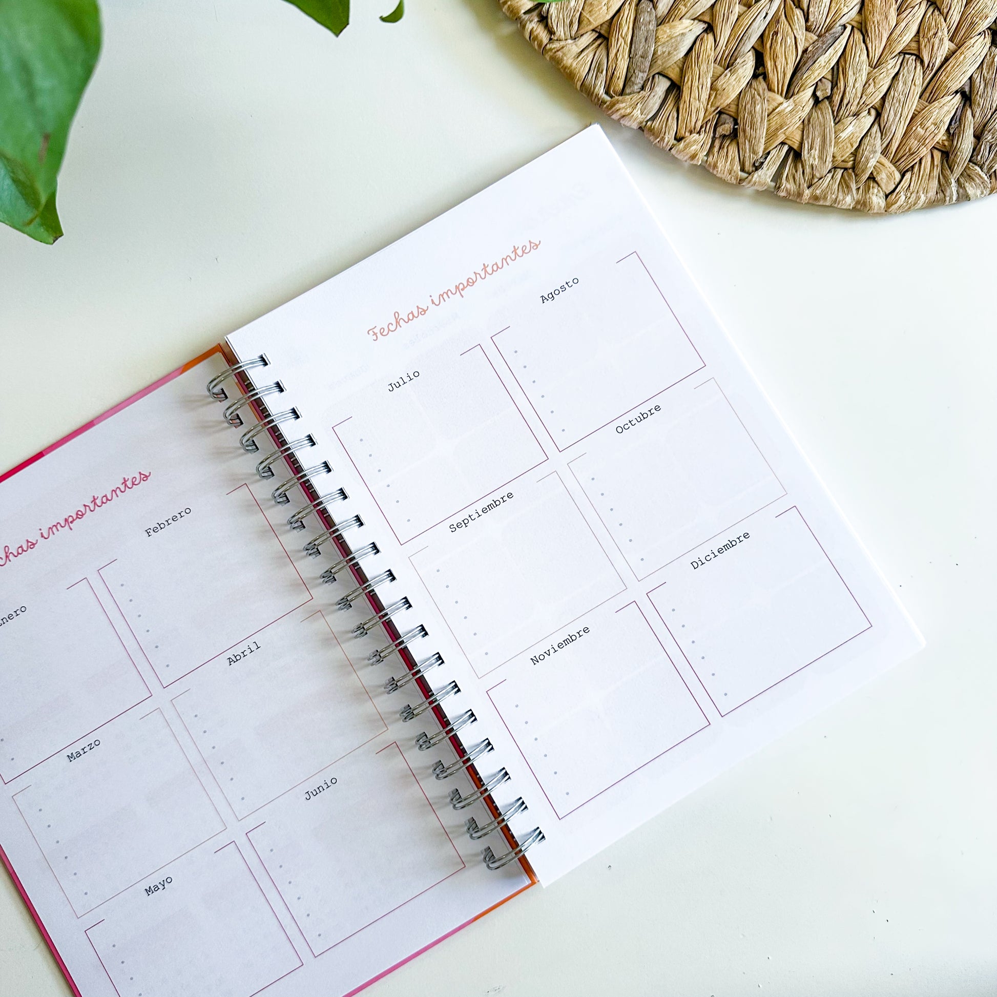 Ideal si te gusta planificar tu año sin complicaciones, pero con todo lo necesario para mantener tus metas y tu día a día en orden.